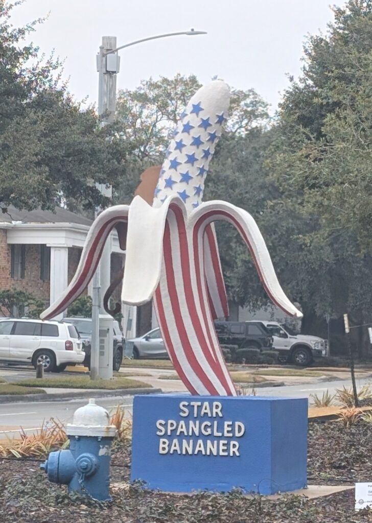 So my art for today was catching up on blogs. I have been behind for this weekend. I’m down in Houston visiting Owen. Saw a really cool “Star Spangled Bananer” sculpture. Fun.